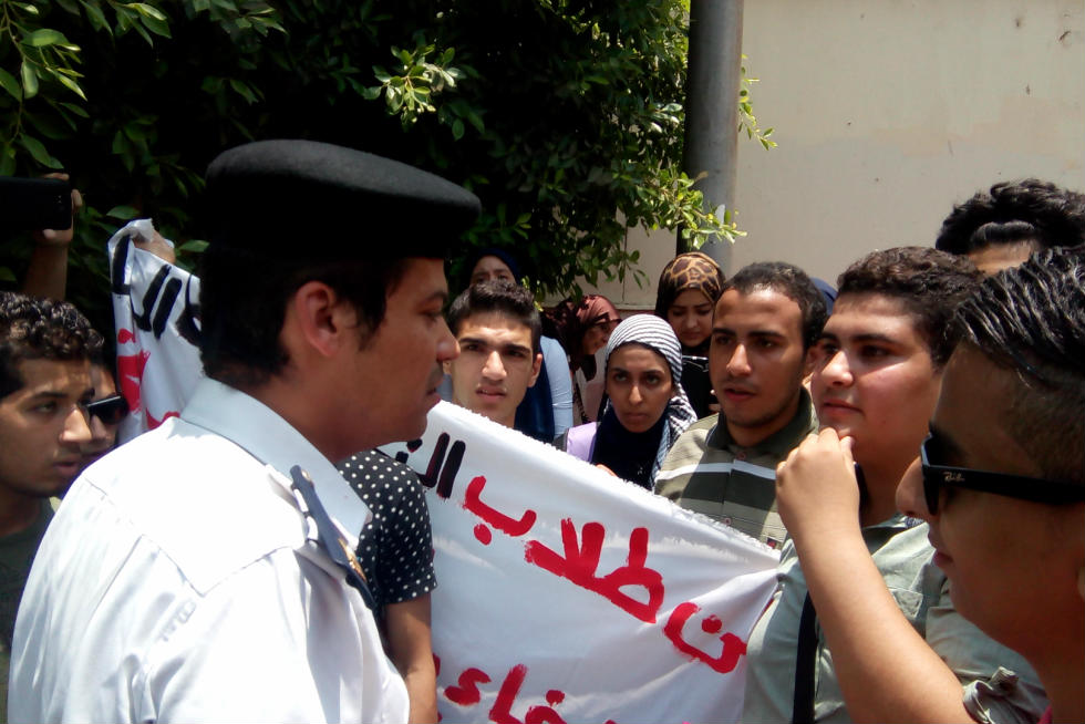 واستمر الطلاب في الهتاف حتى قامت قوات الأمن بفرض كردون أمني حول المظاهرة استمر لأكثر من نصف ساعة إلى أن أجبرتهم قوات الأمن على فض مظاهرتهم.