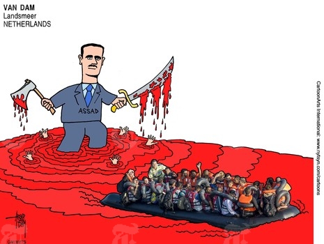 وكذلك نشرت “التايمز” هذا الرسم التعبيري الذي يصف مجازر الأسد بحق الشعب السوري: