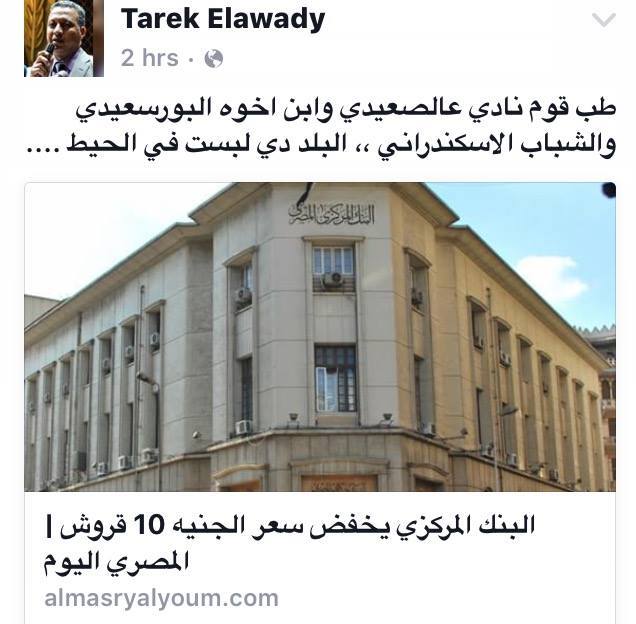 وسخر الوادي من فشل الحكومة قائلاً: “طب قوم نادي عالصعيدي وابن اخوه البورسعيدي والشباب الاسكندراني.. البلد دي لبست في الحيط”.