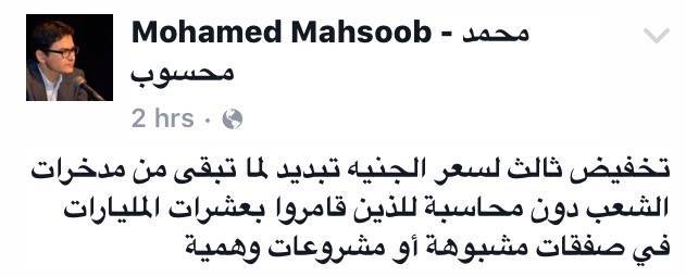 وقال محمد محسوب، القيادي السابق بحزب الوسط: إن تخفيضًا ثالثًا لسعر الجنيه يعد تبديدًا لما تبقى من مدخرات الشعب دون محاسبة الذين قامروا بعشرات المليارات في صفقات مشبوهة أو مشروعات وهمية.