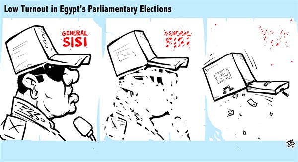 وسخر موقع “كاجل” من ضعف الإقبال الجماهيري على الانتخابات البرلمانية المصرية بهذا الرسم: