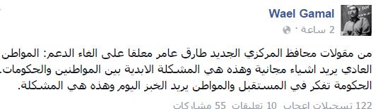 وأشار إلى تصريح آخر له، وهو يعلق على إلغاء الدعم قائلاً: “المواطن العادي يريد أشياء مجانية، وهذه هي المشكلة الأبدية بين المواطنين والحكومات.. الحكومة تفكر في المستقبل، والمواطن يريد خبز اليوم، وهذه هي المشكلة”.