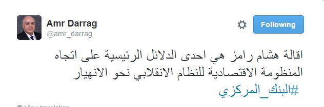 واعتبر عمرو دراج، وزير التخطيط والتعاون الدولي في عهد الدكتور مرسي، أن إقالة هشام رامز هي “إحدی الدلائل الرئيسية علی اتجاه المنظومة الاقتصادية للنظام الانقلابي نحو الانهيار”.
