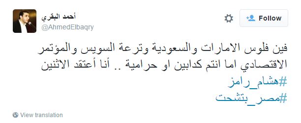 وقال أحمد البقري، نائب رئيس اتحاد طلاب مصر سابقا: “فين فلوس الإمارات والسعودية وترعة السويس والمؤتمر الاقتصادي، إنتم يا إما كدابين أو حرامية.. أنا أعتقد الاثنين”.