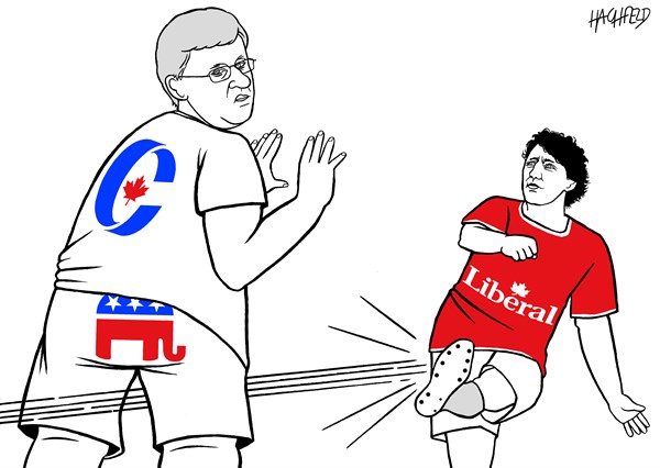 أما موقع “كاجل” فقد نشر هذا الرسم معبرا عن نصر الليبراليين في كندا وإحرازهم الهدف الأكبر في خصومهم.