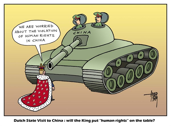 ونشرت “بوليتيكال كارتونز” رسما يسخر من ادعاء الصين حمايتها حقوق الإنسان.