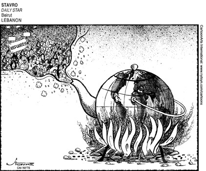 اهتمت الصحف العربية والعالمية بنشر كاريكاتيرات تشير إلى الصراعات والحروب المنتشرة في الشرق الأوسط، ولعل أبرزها ما نشرته “نيويورك تايمز”، لتعبر عن تأثر العالم بما يجري فيه من صراعات في شتى الأنحاء: