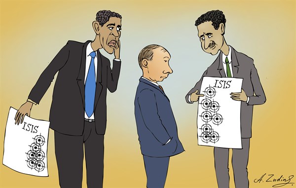 وأشار هذا الكارتون أيضا إلى دور الحليف الروسي في ظل وجود أميركا في سوريا:
