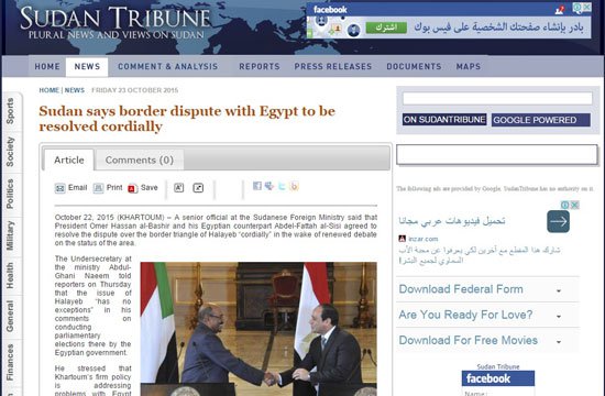 ذكرت صحيفة “سودان تربيون”، نقلًا عن مسئول بارز بالخارجية السودانية، أن عبد الفتاح السيسى والرئيس السوداني عمر البشير قد اتفقا على حل النزاع بشأن منطقة حلايب وشلاتين وديًا فى أعقاب تجدد النقاش حول وضع المنطقة.