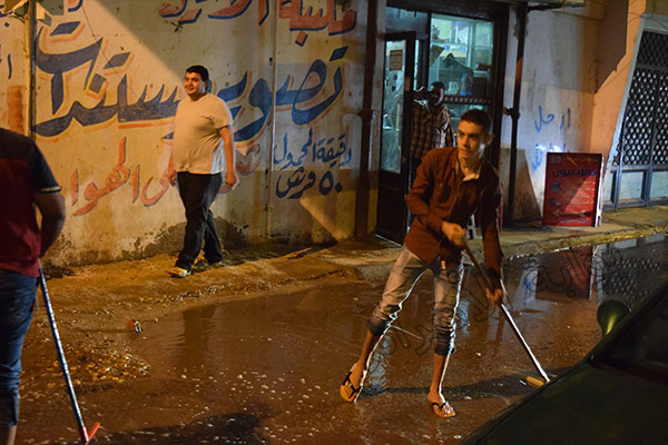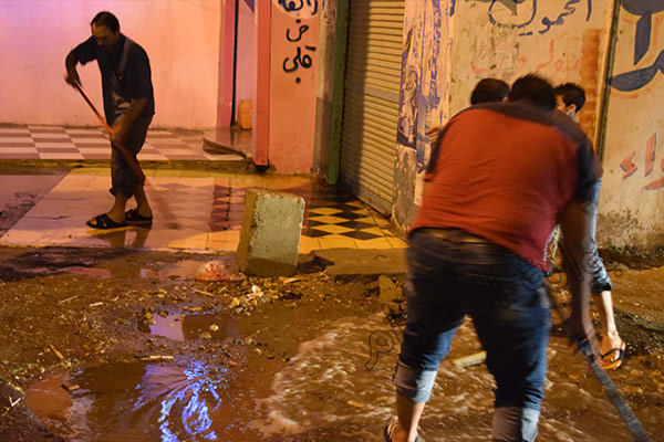 وعجز أهالي منطقة الدراسات عن السيطرة على الوضع، وسط تقاعس المسؤولين والجهات المعنية عن توفير أي وسائل لصرف المياه من سيارات شفط وغيرها، وكذلك عدم جاهزية المدينة لمثل تلك الظروف، من خلال تواجد بيارات صرف مياه الأمطار بالشوارع، مما تسبب في استياء الأهالي.