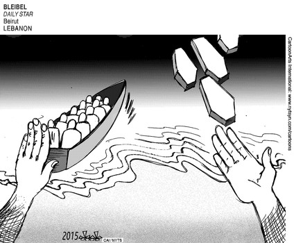 أما الدايلي ستار اللبنانية فقد صورت مراكب المهاجرين نحو أوروبا بالتوابيت من خلال هذا الرسم.