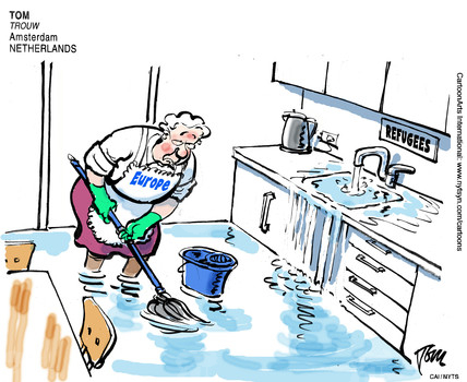 أما الصحافة الهولندية فقد صورت قضية اللاجئين كماء يسبب الفوضى في أوروبا وتقوم القارة العجوز بمعالجة هذه الفوضى التي يبدو من خلال الرسم أنها شديدة الصعوبة.