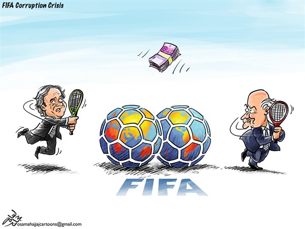 وطرح الرسام أسامة حجاج قضية فساد الفيفا والرشاوى بهذا الرسم: