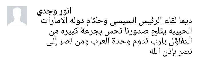 وقال أنور وجدي: “دايما لقاء السيسي وحكام دولة الإمارات الحبيبة يثلج صدورنا نحس بجرعة كبيرة من التفاؤل يا رب تدوم وحدة العرب ومن نصر إلى نصر بإذن الله”.