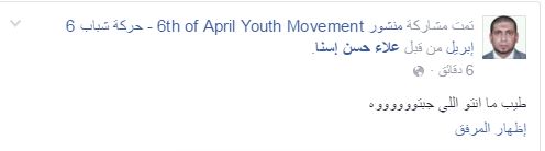 وأعرب الكثيرون من رواد مواقع التواصل الاجتماعي، عن دهشتهم مما أقدمت عليه “6 إبريل”؛ إذ علق Taher Abdullah: “إيه ده عيني عينك كده”.