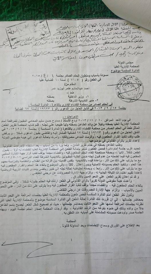 وجاء الحكم الصادر من محكمة القضاء الإداري بالقاهرة في الطعن رقم 7605 لسنة 60 قضائية عليا بتاريخ 1 إبريل الماضي، عن أن قرار استبعاد الطالب محمد عصام شابَه البطلان لأنه لم يستند إلى أي إجراء قانوني أو حتى إداري، خاصة أن الطلاب اجتازوا جميع الاختبارات الطبية أمام أكثر من لجنة طبية تابعة لأكاديمية الشرطة وأثبتت النتائج أن حالتهم ممتازة.