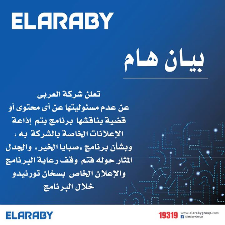 وكانت شركة “ألو إيفا”، هى أول شركة تعلن اسنحابها من برنامج ريهام سعيد “صبايا الخير”، وذكرت عبر حسابها بموقع “فيس بوك”، “تعلن شركة ألو إيفا عن عدم مسؤوليتها عن محتوى أي من البرامج التي تقوم بإذاعة إعلاناتها على قنواتها، وبشأن برنامج صبايا الخير والمُثار جدل حوله فقد قامت الشركة بوقف رعايتها للبرنامج”.