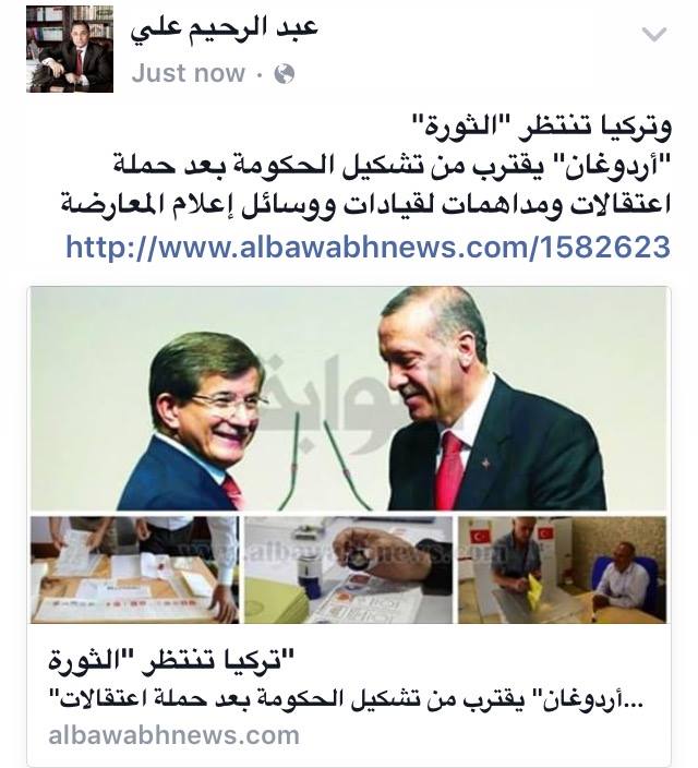 ونشرت الصحيفة نفسها خبرًا يزعم أن رجب أردوغان تعمد إجراء حملة اعتقالات واسعة قبيل الانتخابات من أجل السعي لتشكيل حكومة منفردا دون معارضة.