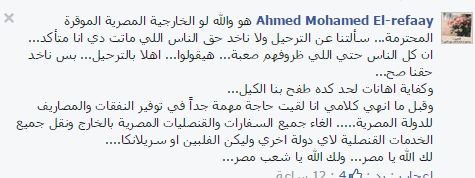 وكتب Ahmed Mohamed El-refaay: “هو والله لو الخارجية المصرية الموقرة المحترمة.. سألتنا عن الترحيل ولا ناخد حق الناس اللي ماتت دي أنا متأكد.. إن كل الناس حتى اللي ظروفهم صعبة… هيقولوا… أهلا بالترحيل… بس ناخد حقنا صح… وكفاية إهانات لحد كده طفح بنا الكيل”..