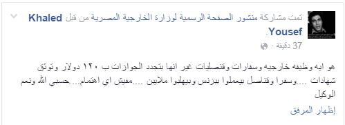 وتساءل ‏Khaled Yousef‎‏: “هو إيه وظيفة الخارجية والسفارات والقنصليات غير إنها بتجدد الجوازات بـ١٢٠ دولار، وتوثق شهادات … وسفرا وقناصل بيعملوا ببزنس وبيهلبوا ملايبن… مفيش أي اهتمام… حسبي الله ونعم الوكيل”.