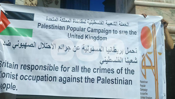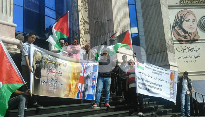 كما نظمت “الحملة الفلسطينية لمقاضاة المملكة المتحدة”، في اليوم ذاته، وقفة صامتة أمام سلالم نقابة الصحفيين في الذكري الـ98 لإعلان وعد بلفور الذي تم سنة 1917.