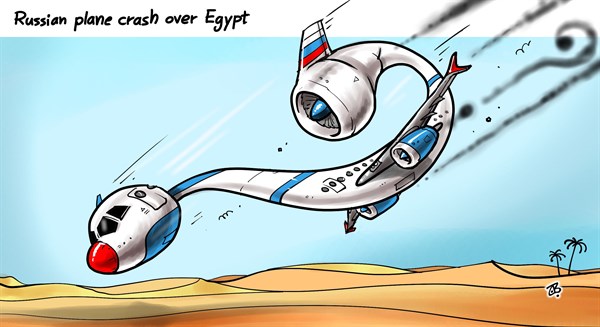 وعن سقوط الطائرة المنكوبة في سيناء نشر موقع “بوليتيكال كارتونز”: