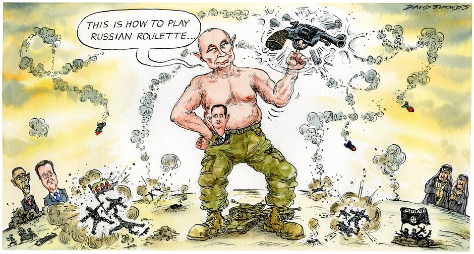 فنجد “الجارديان” قد نشرت هذا الرسم المعبر عن ازدياد سيطرة بوتين في سوريا: