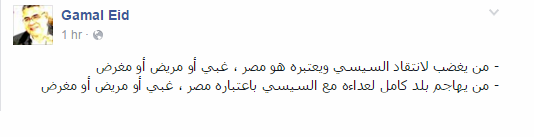 جمال عيد: الغاضب لانتقاد السيسي غبي أو مريض أو مغرض