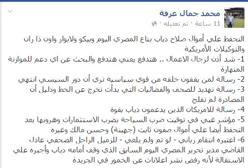 حدد عرفة -عبر منشور له على “فيس بوك”- الخمسة أسباب: