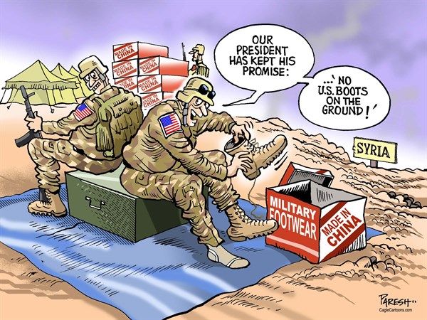 وعن الوضع الأميركي في سوريا ووعود أوباما، نشر “بولتيكال كارتونز” هذا الرسم:
