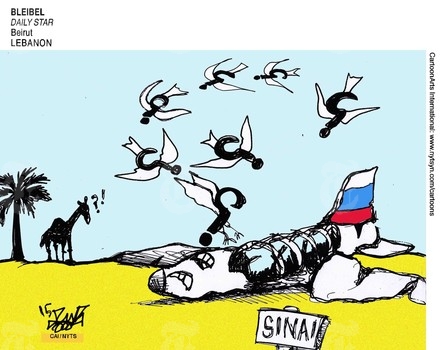 ووجه موقع “بولتيكال كارتونز” اتهامات للجانب المصري بإخفاء معلومات عن سقوط الطائرة الروسية في مصر بهذا الرسم: