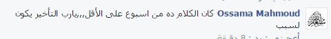 وعلق Ossama Mahmoud: “كان الكلام ده من اسبوع على الأقل..يارب التأخير يكون لسبب”.