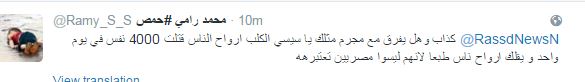 وعلق محمد رامي: “كذاب وهل يفرق مع مجرم مثلك يا سيسي الكلب ارواح الناس.. قتلت 4000 نفس في يوم واحد و يقلك ارواح ناس”.