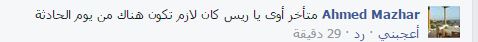 وكتب Ahmed Mazhar :”متأخر أوى يا ريس كان لازم تكون هناك من يوم الحادثة”.