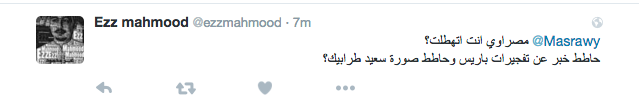 نشرت صفحة “مصراوي” على موقع “تويتر” خبرًا حول تصريحات الفلسطيني المتهم في تفجيرات باريس والتي نفى فيها علاقته بالتفجير خلال اتصال هاتفي مع الإعلامي وائل الإبراشي ببرنامج “العاشرة مساءً” على فضائية “دريم2”.