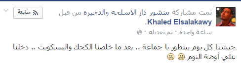 وسخر Khaled Elsalakawy قائلا: “جيشنا كل يوم بيتطور يا جماعة .. بعد ما خلصنا الكحك والبسكويت .. دخلنا علي أوضة النوم”.