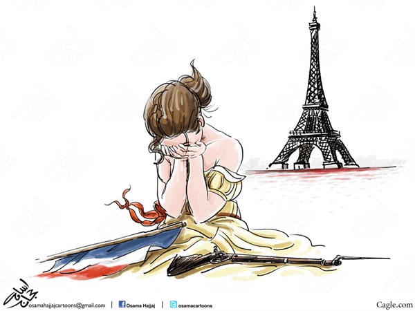 لا يزال صدى عمليات التفجير الذي حدث في باريس يشغل الرأي العام العالمي، فنشرت مواقع وصحف عالمية رسوما كاريكاتيرية منها ما جاء مهددا متوعدا لتنظيم الدولة ومنها ما جاء آسفا عما مرت به باريس.