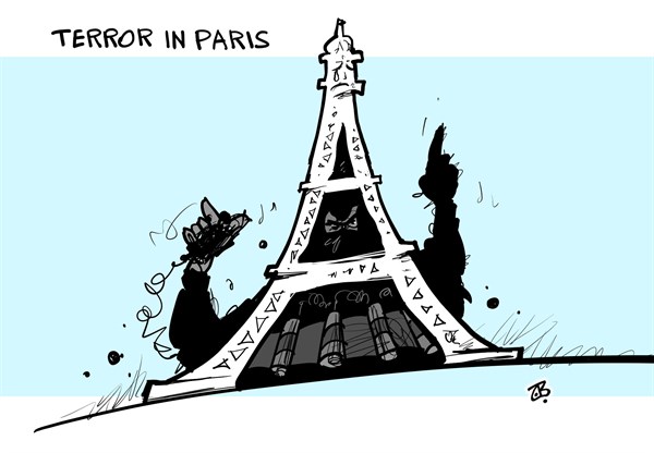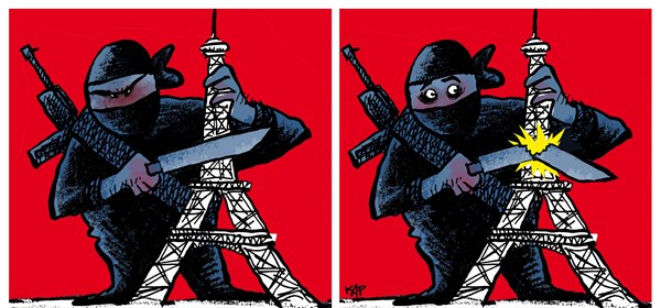 وعن شبح الإرهاب الذي خيم على طرقات باريس نشرت “كاجل” هذا الرسم: