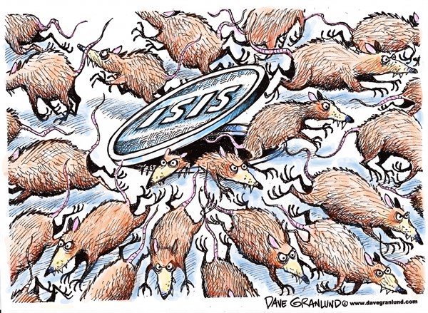 ونشر “بولتيكال كارتونز” هذا الرسم واصفا إرهابيي تنظيم الدولة بالفئران: