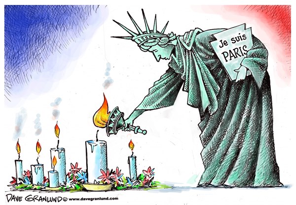 وكمؤازرة من الشعب الأميركي للفرنسيين عبرت “بولتيكال كارتونز” بهذا الرسم:
