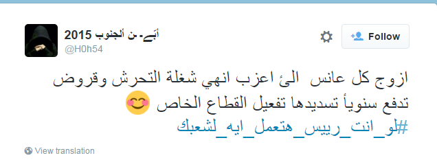 وأراد “أبّي” إنجاز عدة أمور منها: “أزوج كل عانس إلى أعزب، أنهي شغلة التحرش، وقروض تدفع سنويا تسديدها تفعيل القطاع الخاص”.