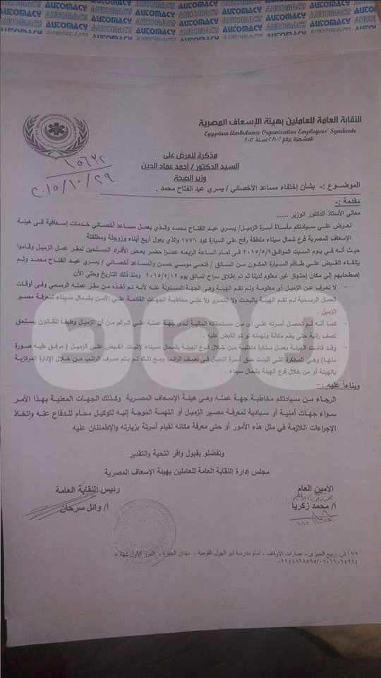 بالمستندات.. مصير مجهول لموظف بـ”الإسعاف” اختطف منذ 6 أشهر بسيناء