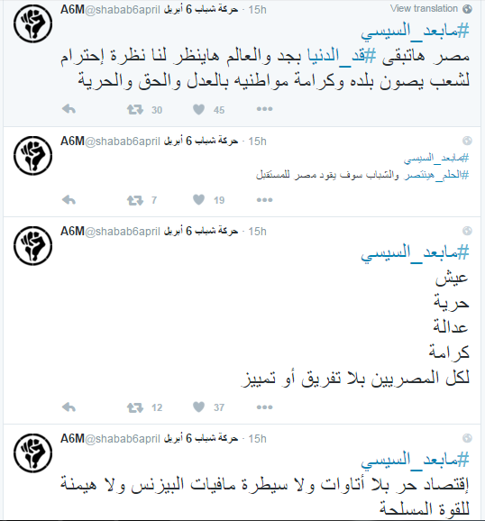 “6 إبريل” تدشن هاشتاج “#ما_بعد_السيسي” ومغردون: ثورة بطعم جديد