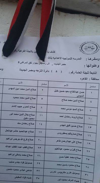 وجاء اسم “السيسي” في أول الكشف كالتالي: حسن عبد الفتاح سعيد حسين خليل السيسي، رغم أن اسمه عبد الفتاح سعيد حسين خليل السيسي، علمًا بأن الكشف بالكامل الخاص بلجنته التي تحمل رقم (8) يبدأ باسم صلاح.