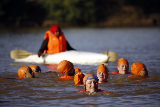 واجتازت النسوة مئات الأمتار سباحة في المياه المضطربة على وقع هتافات التشجيع التي أطلقها جمع احتشد على ضفتي النهر لتشجيعهن، وواكب السابحات فريق من السباحين السودانيين الذين توزعوا على عدة زوارق.