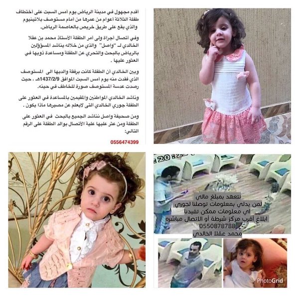 مليون ريال مكافأة لمن يدلي بمعلومات عن طفلة سعودية مختطفة