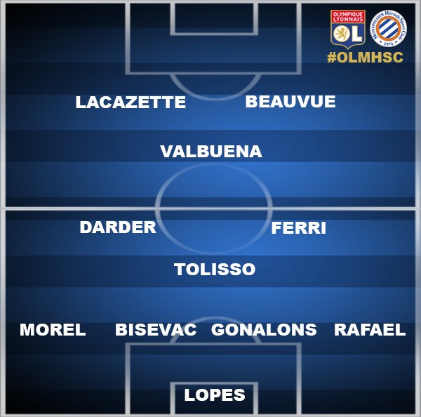 أعلن المدرب فورنيي المدير الفني لنادي ليون الفرنسي عن التشكيل الرسمي لفريقه في مواجهة نادي مونبلييه بعد لحظات قليلة في الجولة الـ15 من دوري الدرجة الاولي الفرنسي “الليجا 1” بملعب جيرلاند معقل الفريق الازرق.