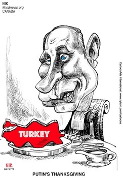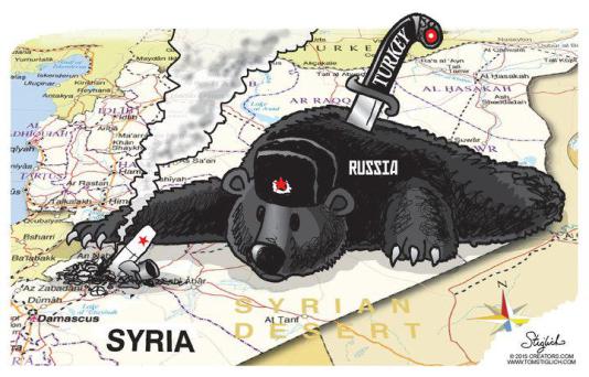 وعن تأزم الوضع الروسي التركي وحرب التصريحات بينهم نشر “بولتيكال كارتونز” هذا الرسم: