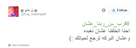 وقالت HamsRoo7y: “#قرب_من_ربنا_عشان يحبك ويسعدك ويرضيك ويحميك ويكفيك ويرزقك ويبارك فيك وينفع بك ويسخر لك”.