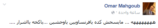 ويعلق Omar Mahgoub: “ههههههههه… مايسحش كده يا فرنساويين يا وحشين… يا كخه يا أشرار…”.